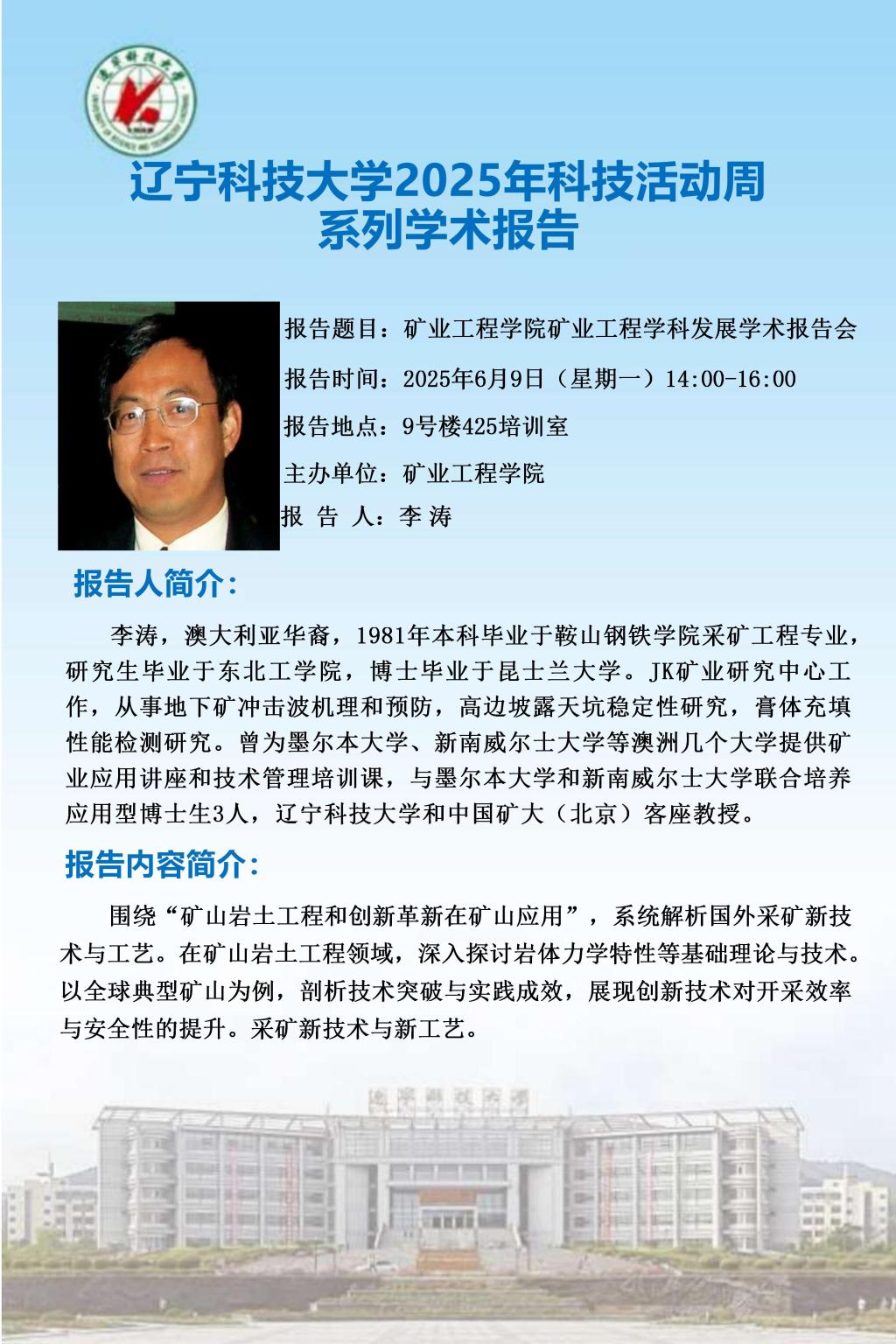 【科技活动周学术预告】矿业工程学院矿业工程学科发展学术报告会